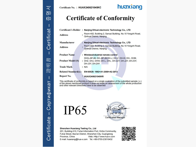 南京帝淮电子科技有限公司,国内工业遥控器行业领军企业,自主研发、定制、非标设计各类工业级无线遥控器、工业级有线控制器、智能化自主算法逻辑的本地控制器等系列产品。已经申请及正在申请的技术专利、外观专利有近三十项左右,并通过了CE欧盟认证、国家级试验检验报告、EMC电磁兼容认证等。